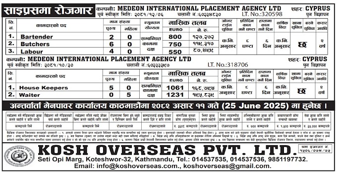 Jobs in Cyprus, Europe for Nepali, salary up to NRs 1,95,839